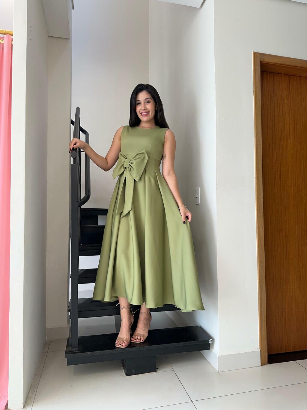 O vestido Laila Maria, feito em crepe de alfaiataria, traz elegância e modernidade com seu caimento impecável. O laço frontal adiciona um toque delicado, perfeito para quem ama estilo e sofisticação.